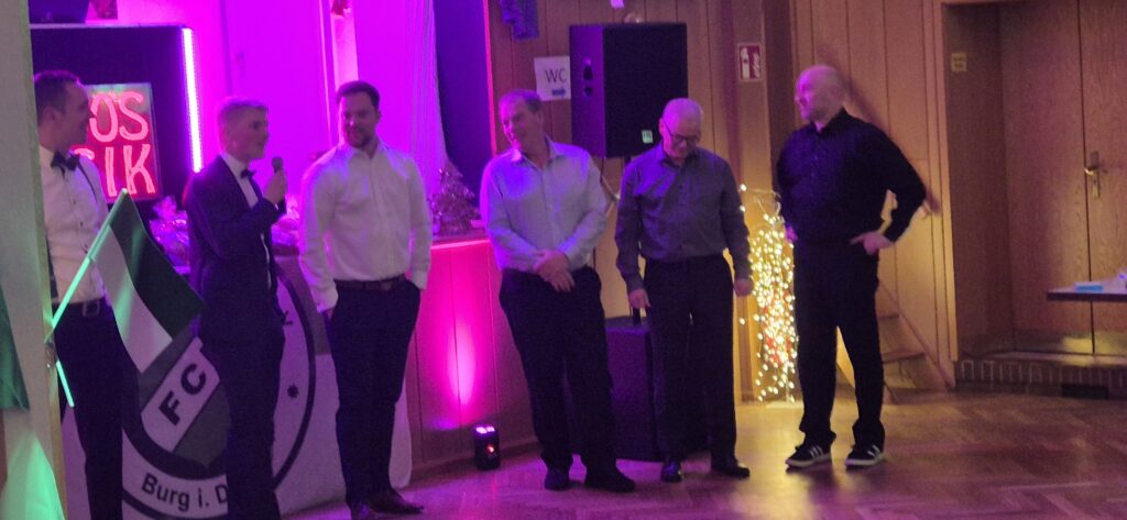 Am vergangenen Samstag veranstaltete der FC Burg seine Weihnachtsfeier im Gasthof „Zur Linde“ in Windbergen. Die 95 anwesenden Gäste genossen zunächst ein Buffet, gefolgt von Tanzmusik, dargeboten von DJ Otto (Thomas Henningsen). Im weiteren Verlauf des Abends wurden die traditionellen Darbietungen der „Neuzugänge“ mit Begeisterung aufgenommen. Die Mitglieder des FC Burg verbrachten den stimmungsvollen Abend tanzend, trinkend und in angeregten Gesprächen bis in die frühen Morgenstunden.